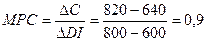 б) Так, как С=С0+MPC*DI, то МРС =0,9