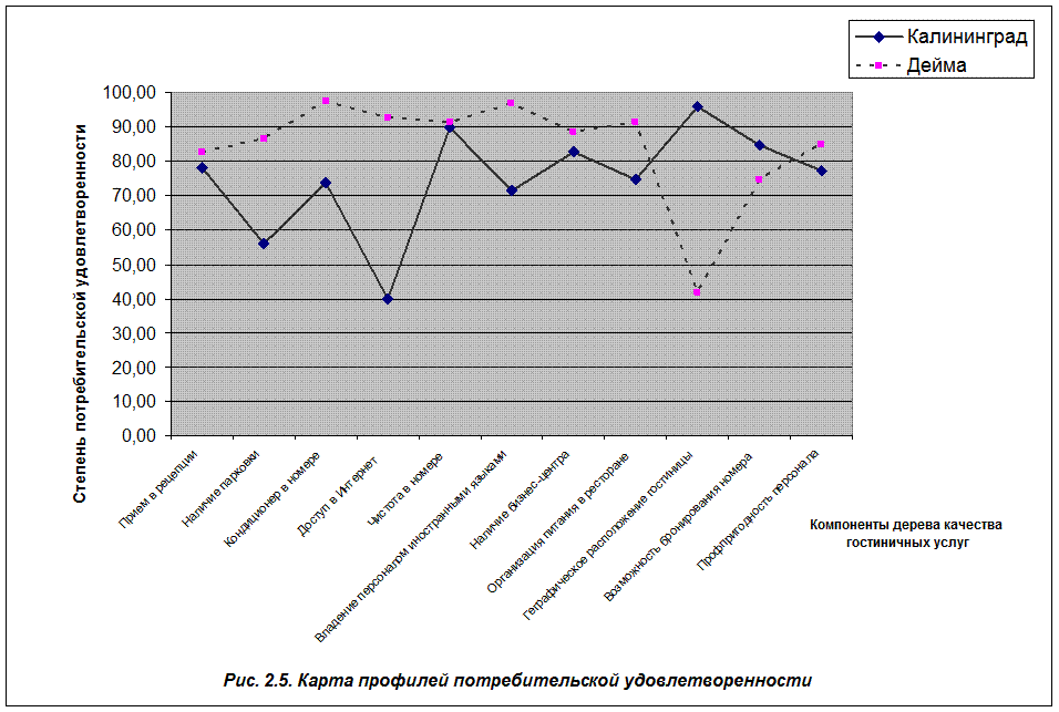 В последние годы гостиничный рынок характеризуется ростом предложения при одновременном сокращении спроса на услуги размещения. Одним из основных направлений формирования стратегических конкурентных преимуществ в гостиничном бизнесе является предоставление услуг более высокого качества по сравнению с конкурирующими аналогами. Исходя из этого, потребители выбирают производителя услуг и после их предоставления сравнивают свое представление о полученной услуге со своими ожиданиями. Если представление о предоставленной услуге не соответствует ожиданиям, клиенты теряют к сервисной фирме всякий интерес, если же соответствует или превосходит их ожидания, они могут вновь обратиться к такому производителю услуг. Покупатель всегда стремится к определенному им соответствию цены услуги и ее качества.