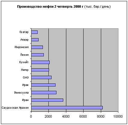 Лидирующие позиции на рынке топлива занимает нефть. В начале 1995 г. доказанные извлекаемые запасы нефти в мире составляли около 137 млрд. т. .При существующем уровне годовой добычи нефти (3,2—3,7 млрд. т) обеспеченность запасами составляет около 42 лет. Примерно 77% этих запасов сосредоточено в странах — участницах ОПЕК, а на страны ОЭСР приходится только 12% мировых запасов. К крупнейшим производителям относятся Саудовская Аравия, США, СНГ, Иран, Мексика. Доля стран — участниц ОПЕК в мировой торговле нефтью составляет около 65%, а их поступления от торговли нефтью в 1996 г. составили около 160 млрд. дол.