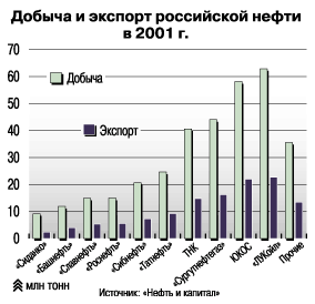 Рис. 8. Добыча и экспорт российской нефти в 2001 г.