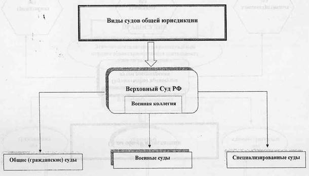 Ниже схематично указано место военных судов в системе судов общей юрисдикции.