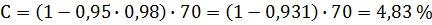 Определить влияние изменения норм расхода сырья и цены на него на величину себестоимости продукции, если известно, что планируется снизить нормы расхода сырья на 5 %, при снижении цен на 2 %. Себестоимость товарной продукции по отчету 800,0 тыс. руб., удельный вес затрат на сырье и материалы в структуре себестоимости составляет 70 %.
