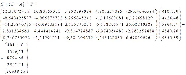 межотраслевого баланса состоит в отыскании таково вектора валового выпуска Х, который при известной матрице прямых затрат А обеспечивает заданный вектор конечного продукта Y. Перепишем
