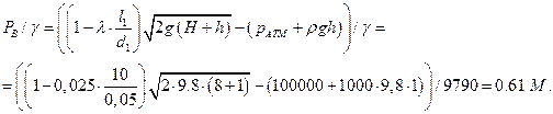 Для построения пьезометрических линий, найдем пьезометрические высоты соответственно в точках А и В: