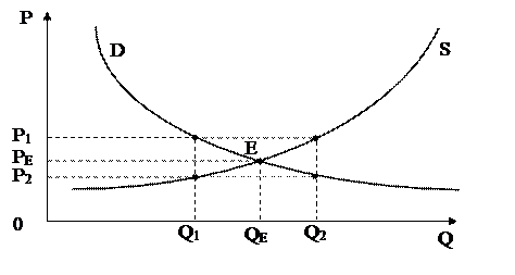 Рыночное равновесие – это когда планы покупателей (спрос) и продавцов (предложение) совпадают так, что при данной цене величина предложения равна величине спроса.