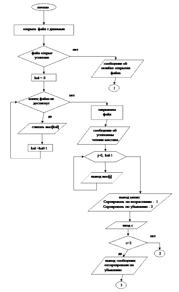 Нарисуйте детальную блок-схему алгоритма сортировки массива - «пузырек» и реализуйте его на языке программирования. Программа должна предлагать пользователю возможность сортировки массива по возрастанию и убыванию и выводить результат сортировки на экран, при этом массив должен храниться в файле на диске.