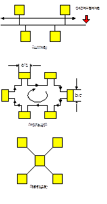 Рисунок 2 – структура построения (а) шина, (б) кольцо, (в) звезда