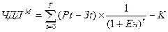 На практике часто пользуются модифицированной формой для расчета ЧДД. Для этого из состава Зt исключают капитальные вложения, их обозначают через:
