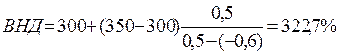 Таким образом, ВНД находится в интервале от 300 до 350 %.