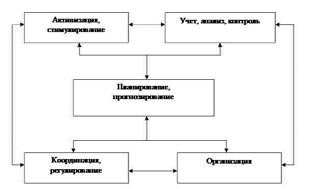 Процесс управления предприятием складывается из многих функций. В их число входят планирование и прогнозирование; организация; координация и регулирование; учет, контроль и анализ; активизация и стимулирование (рис.1.1). Каждая функция характеризуется присущим ей технологическим процессом обработки информации и способом воздействия на управляемый объект.
