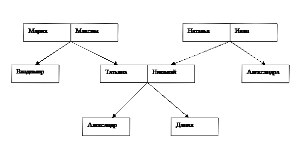 В данной задаче будем описывать семью, родственные отношения которой приведены на рисунке.