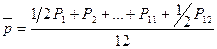 где Р1, Р2, …..Р12 – численность работников по месяцам, чел.