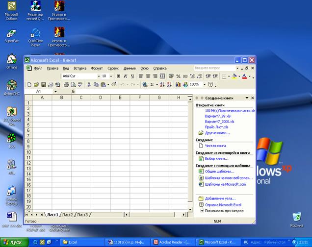 Рисунок 4. Фрагмент рабочего стола WINDOWS