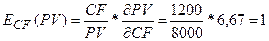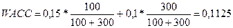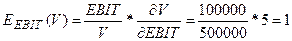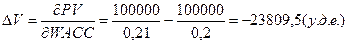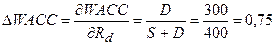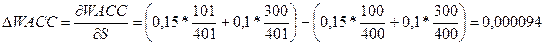 То есть, увеличение средневзвешенной доходности капитала на один пункт (процент) в точке WACC=0,2 снизит объем капитала компании на 0,01 процента.