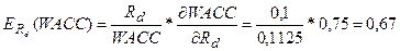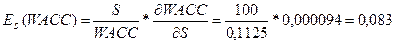 В данной модели посчитаем коэффициент частной эластичности по фактору WACC: