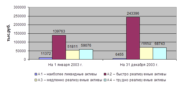 Рис. 2.3.1 – Динамика средств по группам для анализа ликвидности