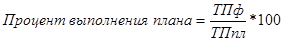 При оценке выполнения плана объема производства продукции рассчитываются абсолютное (ΔТП) и относительное (процент выполнения плана) отклонение по формулам (1, 2)