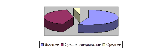 -в целом по аппарату 56,24% госслужащих имели высшее образование, 41,07% - средне-специальное, 3,57% - среднее;