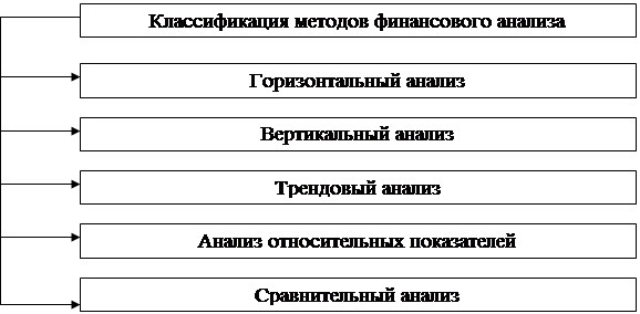 Среди можно выделить основные: горизонтальный анализ (временной) – сравнение каждой позиции отчетности с предыдущим периодом; вертикальный анализ (структурный) – определение структуры итоговых финансовых показателей, с выявлением влияния каждой позиции отчетности на результат в целом; трендовый анализ – сравнение каждой позиции отчетности с рядом предшествующих периодов и определение тренда, т.е. Основной тенденции динамики показателя. С помощью тренда ведется перспективный прогнозный анализ [22].