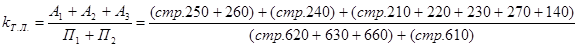 Коэффициент текущей ликвидности (общего покрытия) отражает соотношение оборотных средств организации и ее текущих пассивов или характеризует платежеспособность организации.