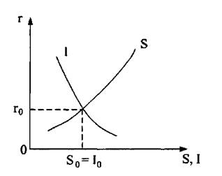 На графике на оси абсцисс располагаются сбережения и инвестиции, а на оси ординат — норма ссудного процента. График характеризует равновесие на рынке капиталов и показывает, что инвестиции зависят от нормы процента: I = I(г).