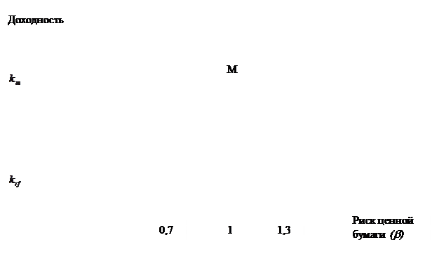 Данную взаимосвязь конкретизирует модель оценки доходности финансовых активов (Capital Asset Pricing Model, CAPM), разработанная более или менее независимо друг от друга Джоном Линтнером, Яном Мойссином и Уильямом Шарпом.