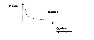 Зависимость между ценой и спросом для отраслей обратно пропорциональная. Снижение цен приводит к увеличению спроса. Кривая спроса отрасли будет иметь классический вид, рис.2.