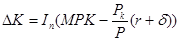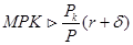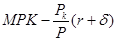 Реальный доход от сдачи в аренду единицы капитала равен его реальной цене R/P. Реальная цена совпадает с предельной производительностью капитала MPK.