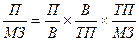 В/ТП – удельный вес выручки в общем объеме выпуска товарной продукции (Дв), ТП/МЗ – материалоотдача, ,