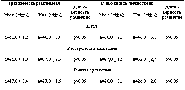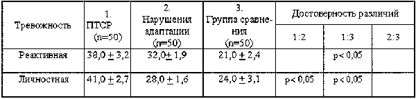 3. Подтверждена большая степень тревоги и депрессии при ПТСР по сравнению с группой пациентов с нарушениями адаптации (р? 0,05).