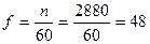 Число оборотов вала электродвигателя = 2880 об/мин;