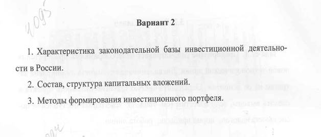 К.р. Экономическая оценка инвестиций