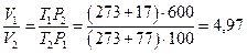 Решение. По закону Шарля, за счет изменения температуры и давления объем газа увеличится в: