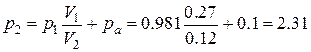 Задача А5. Поршневой компрессор всасывает атмосферный воздух при давлении р0 =100 кПа и температуре t0 =17°C в количестве Q = 8,33 × 10-2 м3/с. И нагнетает его в резервуар емкостью W = 12 м3. Через сколько минут давление в резервуаре поднимется до р1 =600 кПа, если при сжатии температура воздуха повышается до t0 =77°C?