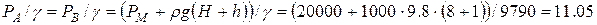 Для построения пьезометрических линий, найдем пьезометрические высоты соответственно в точках А и В:
