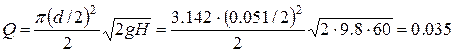 количестве Q = 0,833 × 10-2 м3/с, при избыточном