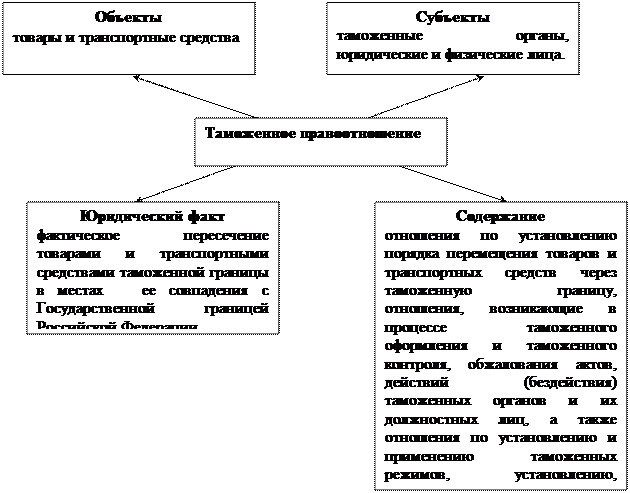 Схема таможенного правоотношения, где определены субъекты, объекты, содержание, юридические факты.