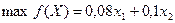 f(х1,х2) = 0,08 х 100 + 0,1 х 200 = 28