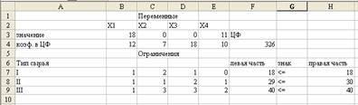 Проверим как удовлетворяет система функциональных ограничений оптимальным планом Х* = (х1 = 18, х2 = 0, х3 = 0, х4 = 11)