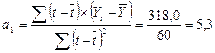 Y(11) = 4,9 + 5,3 х 11 = 63,2