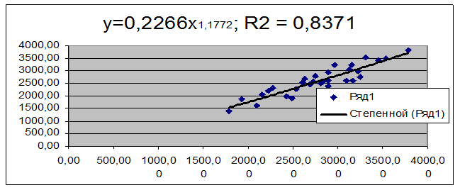 Возможности инструмента Мастер диаграмм позволяют быстро производить построение и анализ адекватности регрессионных моделей, базирующихся на использовании различных видов зависимости между признаками X и Y.