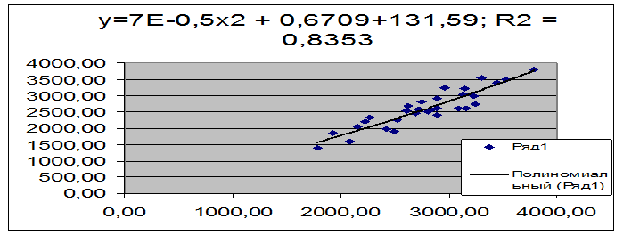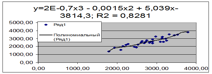 Вид искомого уравнения регрессии – y = 2E-07x3 - 0,0015x2 + 5,039x - 3814,3