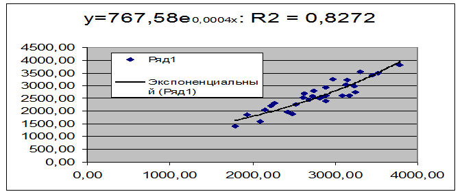 Это уравнение регрессии и его график приведены на отдельной диаграмме рассеяния (рис.4)Рабочего файла.