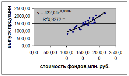 Рис. 5. Уравнения регрессии (экспонента) и его график
