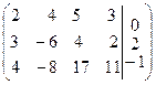= 4×(2 – 4) – 3×(1 – 4) – (4 – 8) = – 8 + 9 + 4 = 5;