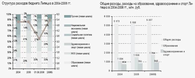 затрат бюджета г. Липецка являются образование, ЖКХ, здравоохранение и спорт, а