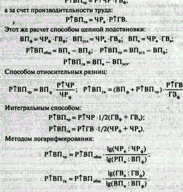 Например, если объем валовой продукции представить в виде произведения количества рабочих и их выработки (ВП = ЧР ГВ), то резервы увеличения объема производства продукции за счет увеличения численности рабочих, используя способ абсолютных разниц, можно определить по формуле: