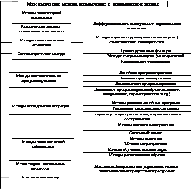 Рис. 1. Классификация основных математических методов, применяемых в экономическом анализе.
