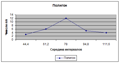 Построены 3 графика: гистограмма (рис. 3.2), полигон (рис. 3.3) и кумулята (рис.3.4).