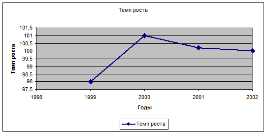Вывод: выпуск продукции в 2002 году возрос до 1822 млн. руб. по сравнению с 1998 годом - это положительный момент, абсолютный прирост в 2002 году понизился до 0 - это отрицательный показатель, темп роста понизился до 100% в 2002 году по сравнению с 2000 годом - это тоже отрицательный показатель.
